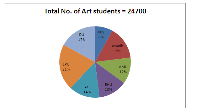 Directions (Q.1–5): The following pie chart shows the distribution of Students of Engineering and Art students enrolled in seven different universities. Read the following questions and answer it carefully.