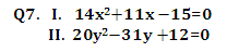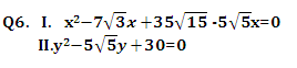 Directions (Q. 6 – 10): In each of these questions, two equations (I) and (II) are given. You have to solve both the equations and give answer