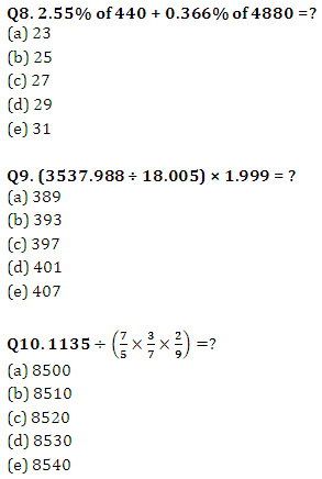 Directions (Q. 6-10): What approximate value should come in place of question marks (?) in the following questions?