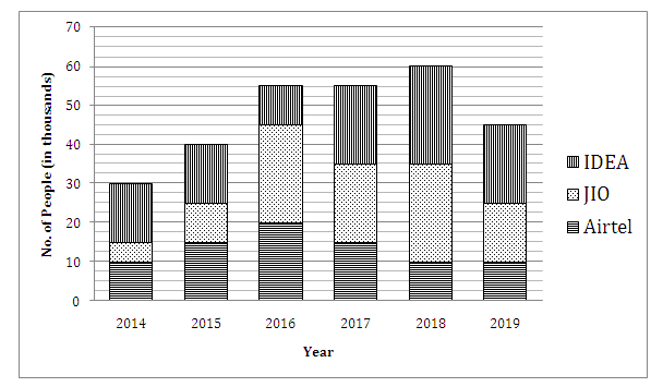 Q15. What is the total number of people using mobile service of JIO in the years 2018 and 2019 together?