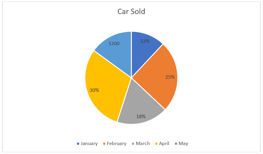 the below pie chart shows the sale of cars in five different months of 2021. January, February, March, April and May.