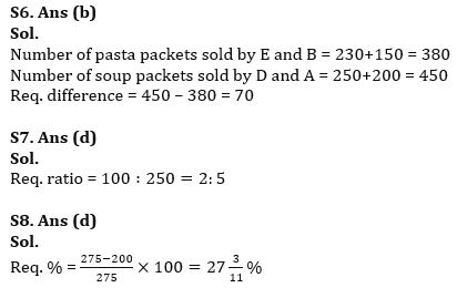 Q6. Find the difference between sum of number of pasta packets sold by E and B together and sum of number of soup packets sold by D and A together.