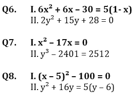 Directions (6-10): In each of these questions, two equation (I) and (II) are given. You have to solve both the equations and give answer
