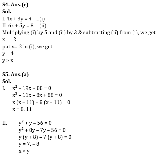 Directions (6-10): – In each of the following questions, two equations (I) and (II) are given you have to solve both the equations and give answer.