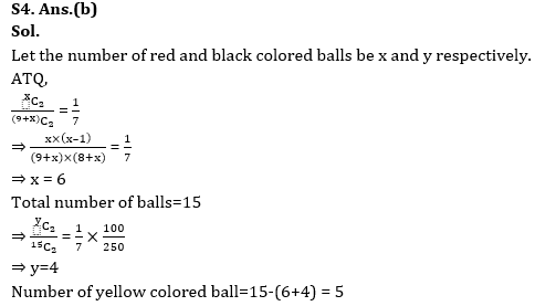 Q4. In a bag, there are some red and total 9 black and yellow balls. Probability of selecting two red balls from that bag is 1/7 which is 250% of the probability of selecting two black balls. Find number of yellow balls in that bag if the number of black balls is even.
