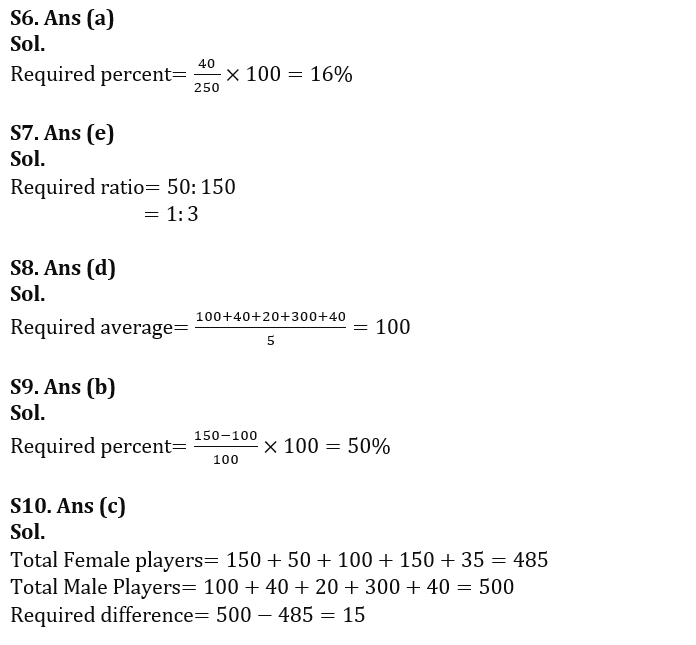 Q10. Find the difference between the total number of male players and female players playing all five different sports.