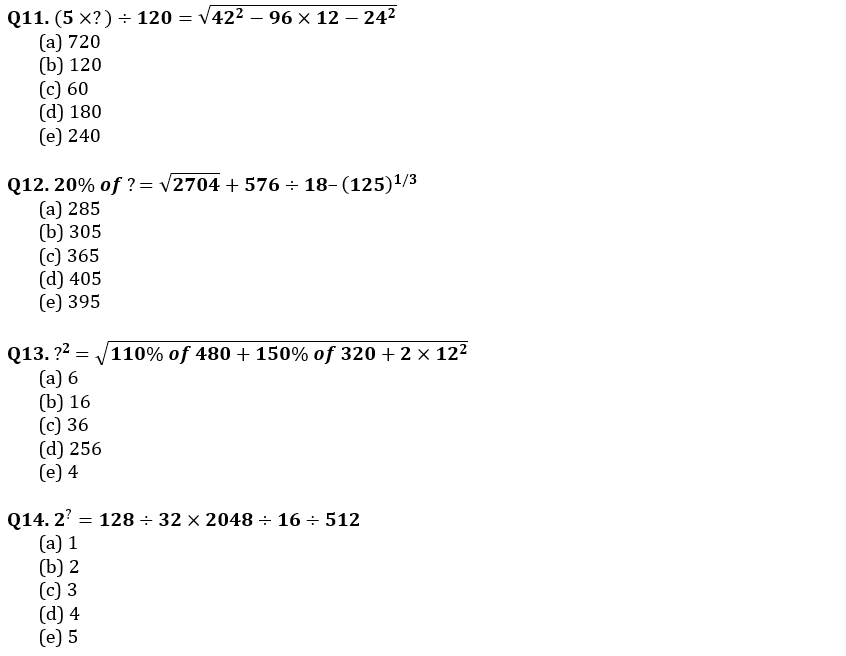 Directions (11-15): What value will come in place of question mark (?) in the given questions?
