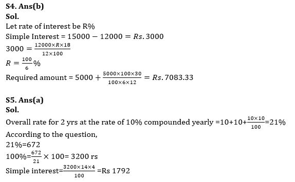 Q4. Rs 12000 becomes Rs. 15000 in 18 months at a certain rate of interest at simple interest. Find amount, if Rs 5000 invested at same rate for 30 months at simple interest.