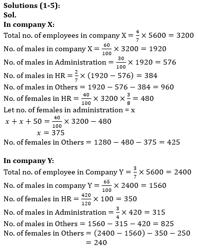 In company Y – No. of male employees are 65%. Total 420 males work in HR department, which is 120% of the females working in HR. No. of males working in Administration are 3/4th of males in HR. 250 females works in Administration.