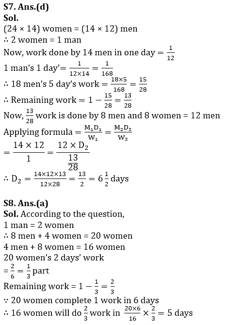 Q8. 8 men and 4 women together can complete a piece of work in 6 days. Work done by a man in one day is double the work done by a woman in one day. If 8 men and 4 women started working and after 2 days, 4 men left and 4 new women joined, in how many more days will the work be completed?