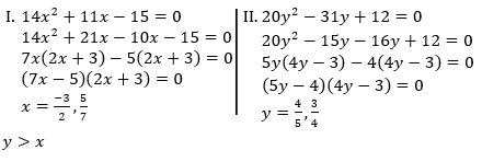 Directions (11-15): In each of these questions, two equations (I) and (II) are given. You have to solve both the equations and give answer