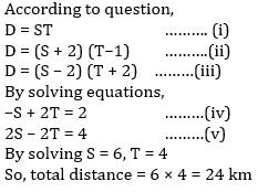 Q4. A man covers a certain distance from A to B on scooter. Had he moved 2 kmph faster, he would have taken 1 hour less. If he had moved 2 kmph slower, he would have taken 2 hours more. Find the distance between A to B: