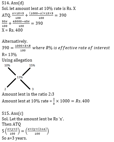Q14. A sum of Rs. 1000 is lent partly at 10% and 15% at simple interest per annum. If total interest received after 3 years is Rs. 390. Find the amount lent at 10% rate.