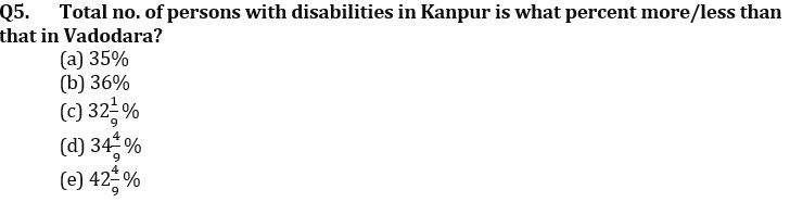 Direction (1-5): The following table shows the total no. of person with disability in five different cities and ratio of male to female in them. Study the table carefully to answer the following questions.