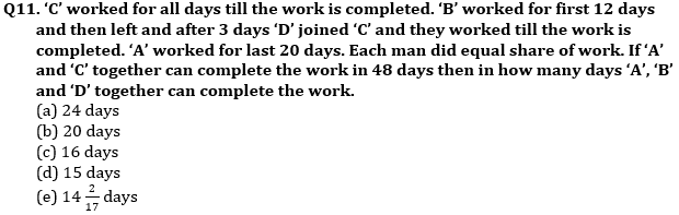 Q9.‘A’ and ‘B’ started a business together. ‘A’ invested (P + 250) initially while ‘B’ invested ‘1.5P’ initially. ‘A’ invested Rs. 1000 more after every 4 months while ‘B’ invested Rs. 500 more after every quarter. After an year ‘A’ got 46% of total profit then find the amount invested by ‘B’ in 3rd quarter?