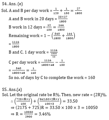 Q5. A sum of Rs. 725 is lent in the beginning of a year at a certain rate of interest. After 8 months, a sum of Rs. 362.50 more is lent but at the rate twice the former. At the end of the year, Rs. 33.50 is earned as interest from both the loans. What was the original rate of interest?
