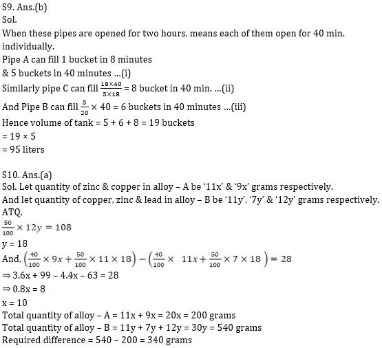 Q10. Alloy-A contains zinc and copper in the ratio of 11 : 9 and alloy-B contains copper, zinc and lead in the ratio of 11 : 7 : 12. 40% of alloy-A and 50% of alloy-B are mixed to form alloy-C. If amount of copper in alloy-C is 28 grams more than amount of zinc in alloy-C and amount of lead in alloy-C is 108 grams, then find difference between initial quantity of alloy-A and alloy-B.