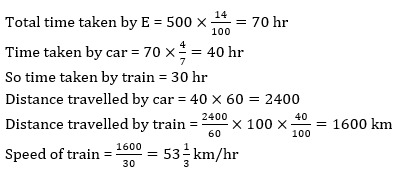 Q6. Find speed of E by train, if the speed of car is 60 km/hr and time taken by car and train are in the ratio of 4 : 3.