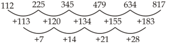 Q6. 112, 225, 345, 479, 634, ?