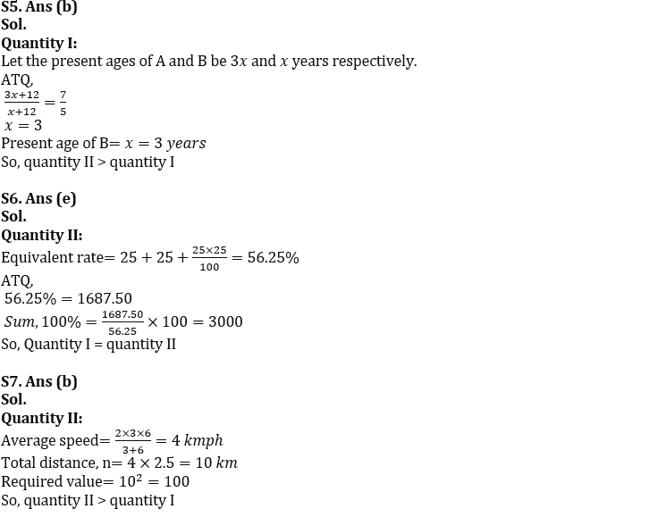 Q5. Quantity I: The ratio of ages of A to B 12 years from now will be 7:5. Find the present age of B, if A’s and B’s respective ratio of present ages is 3:1. (in years)