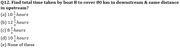 Directions (12 – 13): Ratio of upstream and downstream speed of a boat (A) is 7 : 11 and boat cover 70 km upstream in 5 hours. Boat (B) takes 10 hours to cover 120 km in upstream. (speed of stream is same for both boat)