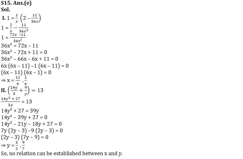 Directions (11-15): In each of these questions, two equations (I) and (II) are given. Solve the equations and mark the correct option: