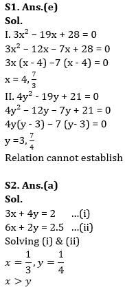 Directions (1-5): In each of these questions, two equations (I) and (II) are given. You have to solve both the equations and give answer