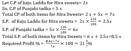 Q4. If ratio of cost price of Kaju Laddu to Punjabi tadka for Hira Sweets are 2:5. Find profit percent on Kaju laddu and Punjabi Tadka together by Hira Sweets.