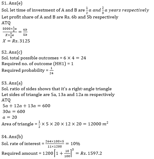 Q1. A and B invested in a partnership Rs. 5000 and Rs. X for half and two-third of time respectively and profit share of A is 20% more than profit share of B. Find X?