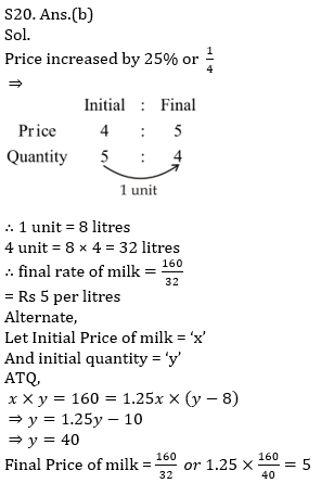 Q20. If the price of milk is increased by 25% then a person can buy 8 litres less milk by spending Rs 160. Find the final rate of milk?
