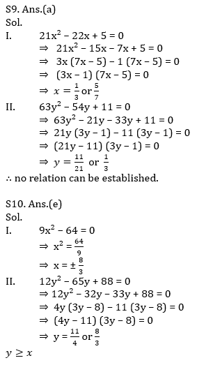 Directions (9-10): In each question two equations numbered (I) and (II) are given. Student should solve both the equations and mark appropriate answer.