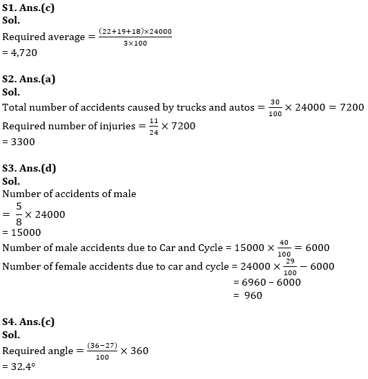 Q4. Find the difference of the central angle corresponding to the number of accidents due to motorcycles and autos together and Trucks and cycles together.