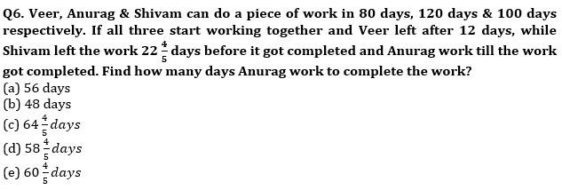 Q4. A and B worked for 20 days and 15 days on a work respectively. The ratio of total wages earned by them is 5 : 4. What is the ratio of their respective efficiency if they work with same efficiency throughout the work.