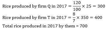Q4. If production of Rice in 2017 by firm Q increase by 20% over previous and that of firm T increase by 100/7% over year 2015, then what is the sum of rice produced by both firm Q & T in 2017.