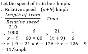 Q2. A 210-metre long train crosses a man running at 9 kmph in opposite direction in 6 seconds. Find the speed of the train.