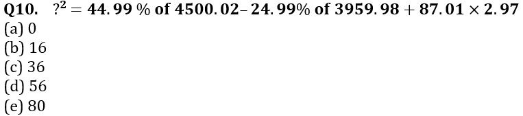 Q11. 1749.98 ÷ 350 ×49.79 +111.03 = (?)²