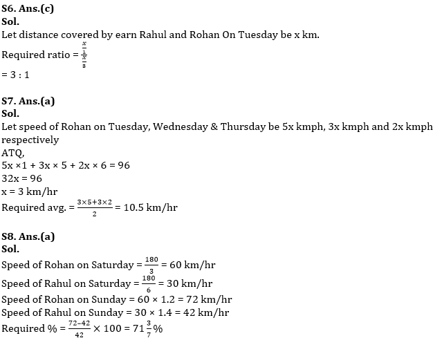 Q7. Total distance covered by Rohan on Tuesday, Wednesday and Thursday together is 96 km and respective ratio of speed on these days is 5 : 3 : 2. Then find average of speed of Rohan on Tuesday and Thursday ?