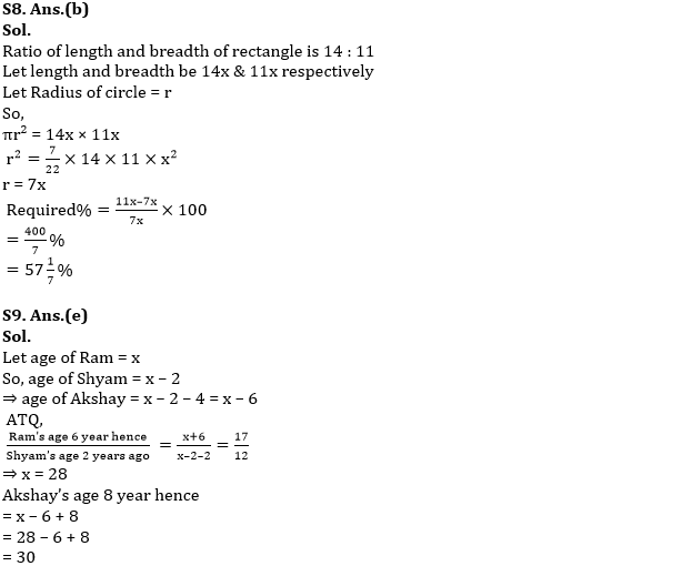Q9. Ram is 2 years older than Shyam while Shyam is 4 years older than Akshay. If ratio of Ram’s age 6 year hence to Shyam’s age 2 year ago is 17 : 12 then, find Akshay’s age 8 years hence ?