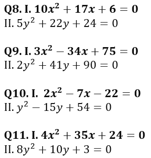 Direction (1-15): In each of these questions, two equation (I) and (II) are given. You have to solve both the equations and give answer.