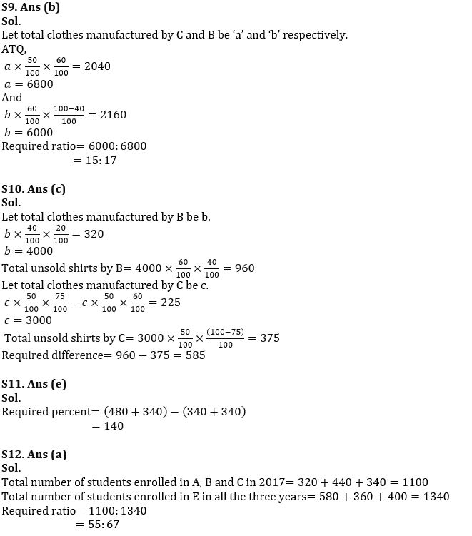 Q9. Total no. of Shirts sold by C is 2040 and total no. of unsold jeans of B is 2160. If total no. of unsold shirts of B are 60% less than of total no. of unsold clothes by B, then find the ratio of total no. of clothes manufacture by B to that of by C?