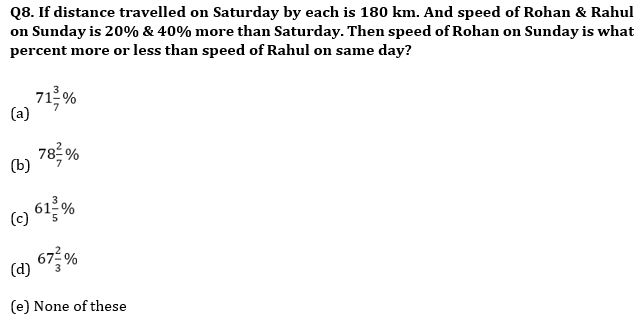 Q7. Total distance covered by Rohan on Tuesday, Wednesday and Thursday together is 96 km and respective ratio of speed on these days is 5 : 3 : 2. Then find average of speed of Rohan on Tuesday and Thursday ?