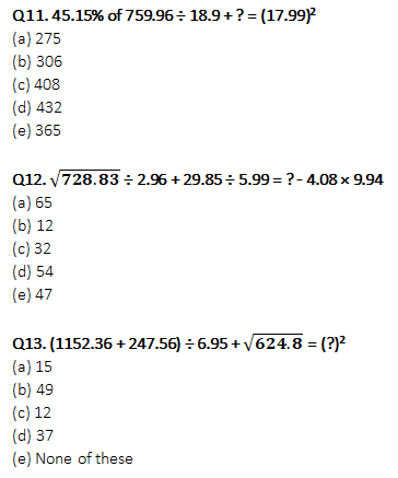 Directions (11 – 15): What appropriate value should come in place of question mark (?) in the following questions?