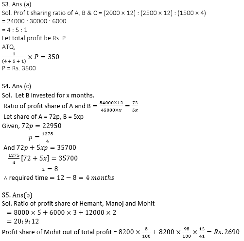 Q3. A invested Rs.2000 and B invested Rs.500 more than A. After 8 months C invested Rs.1500. At the end of the year C got profit of Rs.350. Find total profit.