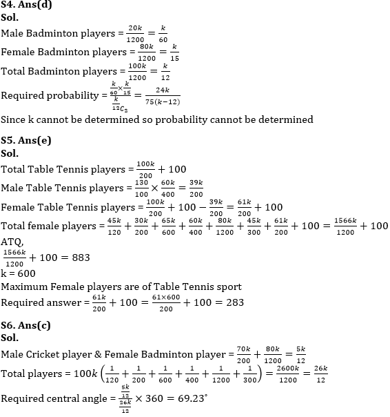 Q5. If total Table Tennis players are 100 more than that of Cricket and male Table Tennis players are 30% more than female Kabbadi players and total female players in all sports are 883. Then which sports is having maximum number of female players?