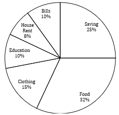Given below is the pie chart, which shows the percentage breakup of monthly Income of person B. Income = Expenditure (bill+house rent+education+clothing+food)+ Saving