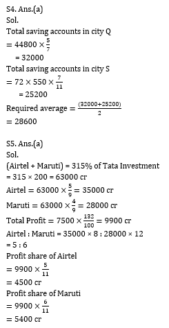 Q5. Airtel and Maruti together invested 315% of, what Tata invested. If ratio between invested amount of Airtel to amount invested by Maruti is 5 : 4 and they gets total 32% more profit than profit share of Tata. Then find profit amount of Airtel and Maruti respectively?