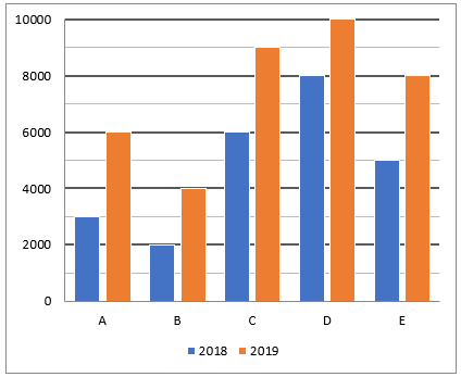 Bar chart shows the total number of Activa & Aviator together in 5 different cities (A, B, C, D & E) in 2018 & 2019 and line chart shows percentage of Aviator in these cities in 2018 & 2019.