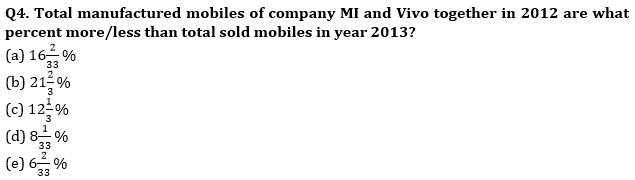 Q5. If total defective Vivo mobiles are 60% of total unsold Vivo mobiles in both years and ratio of defective vivo mobiles in 2012 and 2013 is 1 : 2, then find the sum of defective Vivo mobiles in 2012 and unsold moto mobiles in both years?