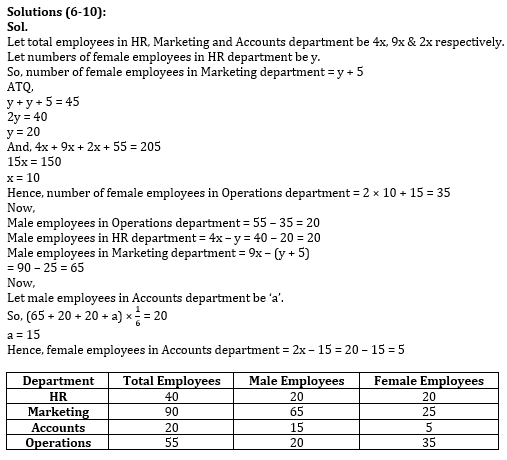 ⇒ Operations: Total number of employees in Operations is 55 and males in Operations are one-sixth of total males in all departments. Females in Operation department are 15 more than total employees in Accounts department.