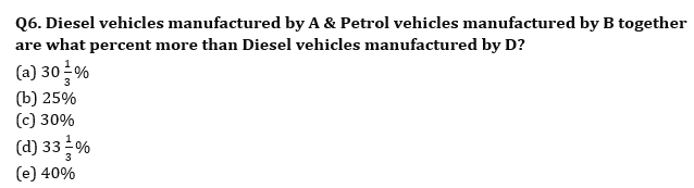 Q8. Average of Diesel vehicles manufactured by B, C & E is 400 and total vehicle manufactured by E are 1040. If ratio of Diesel vehicles to CNG vehicles manufactured by E is 9: 5, then find Petrol vehicles manufactured by E?